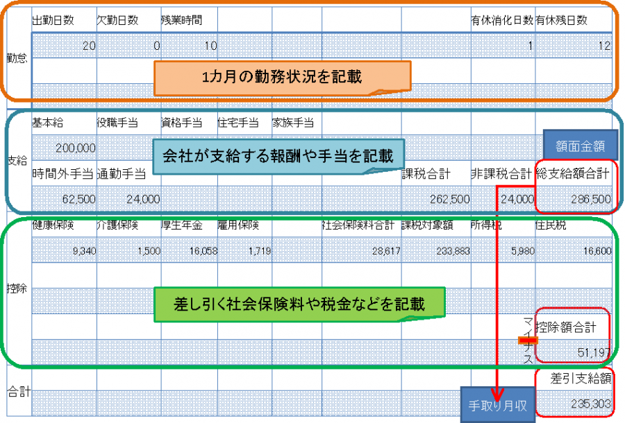 +給与明細(きゅうよめいさい):Bảng chi tiết lương