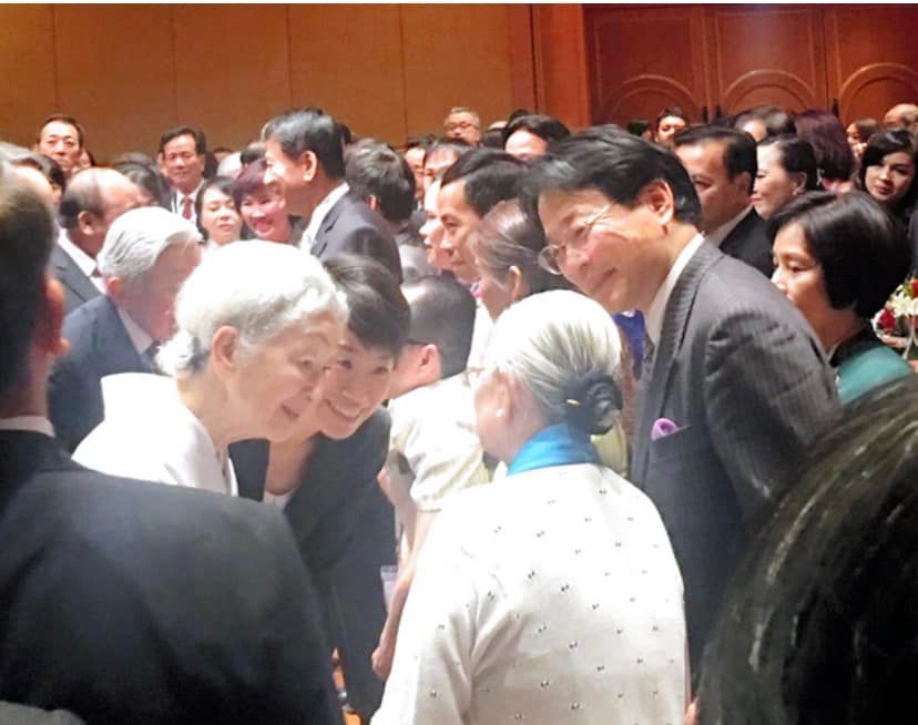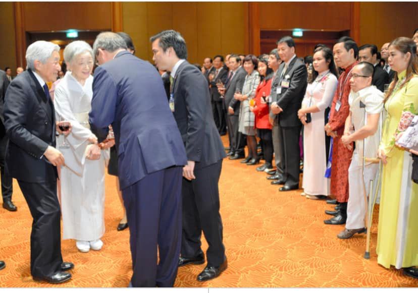 Tối ngày 02/03/2017. Thượng Hoàng và Thái Hậu (khi đó là Thiên Hoàng và Hoàng Hậu) đã thăm chính thức Việt Nam trong buổi thiết Yến chào mừng do Đại sứ và Phu nhân tổ chức tại Hà Nội, đã trao đổi thân mật với ông Nagato Natsume (65 tuổi), Giám đốc điều hành Hiệp hội hở môi và hàm ếch Nhật Bản.